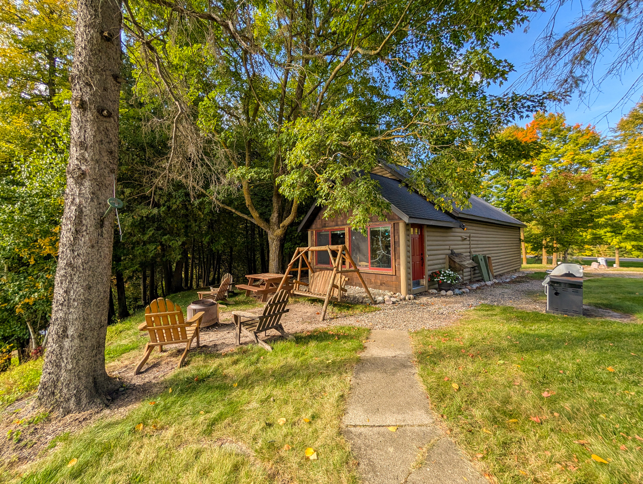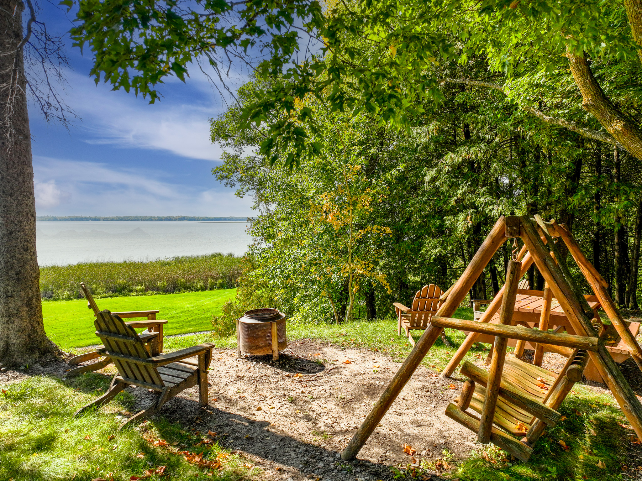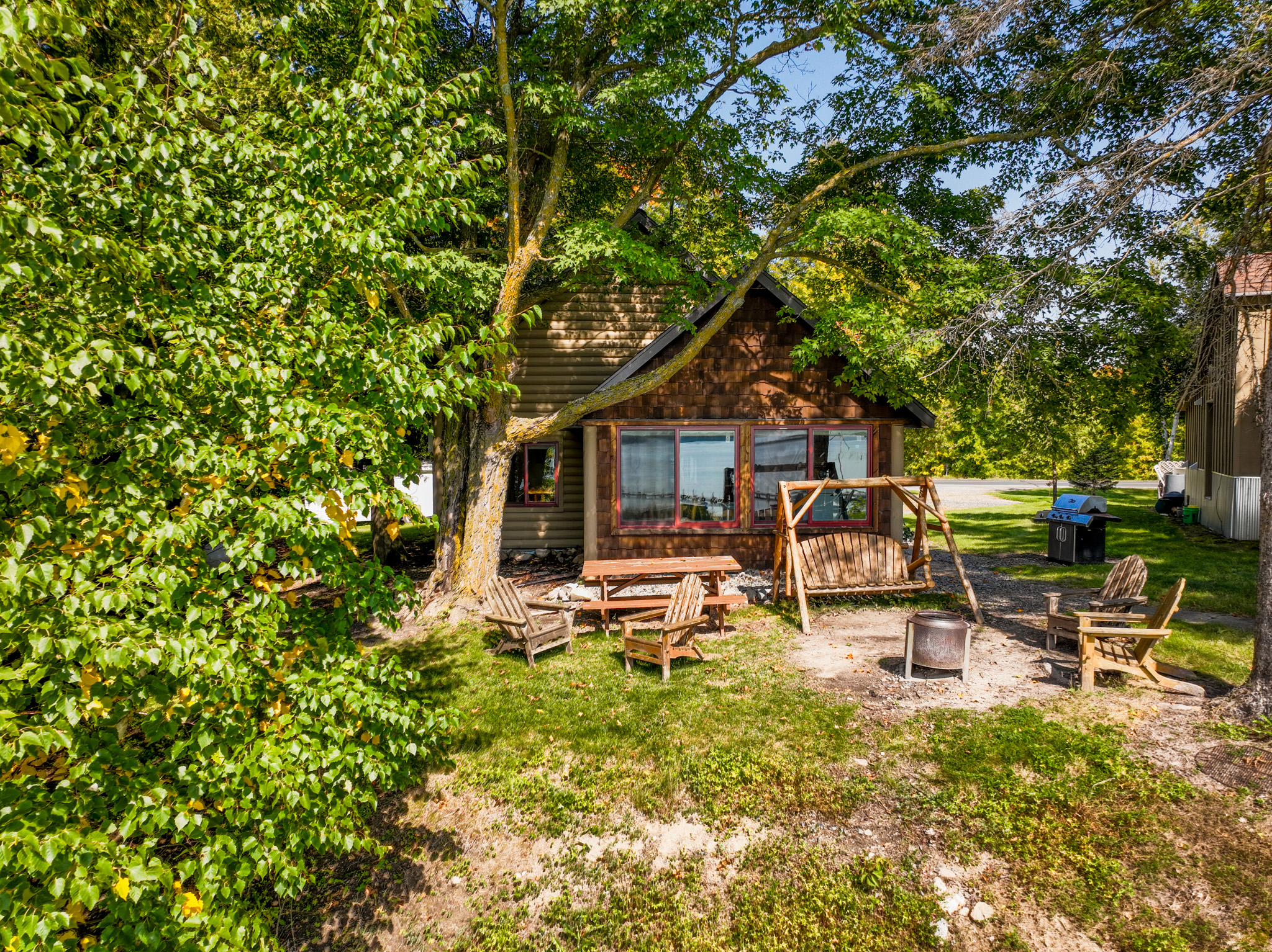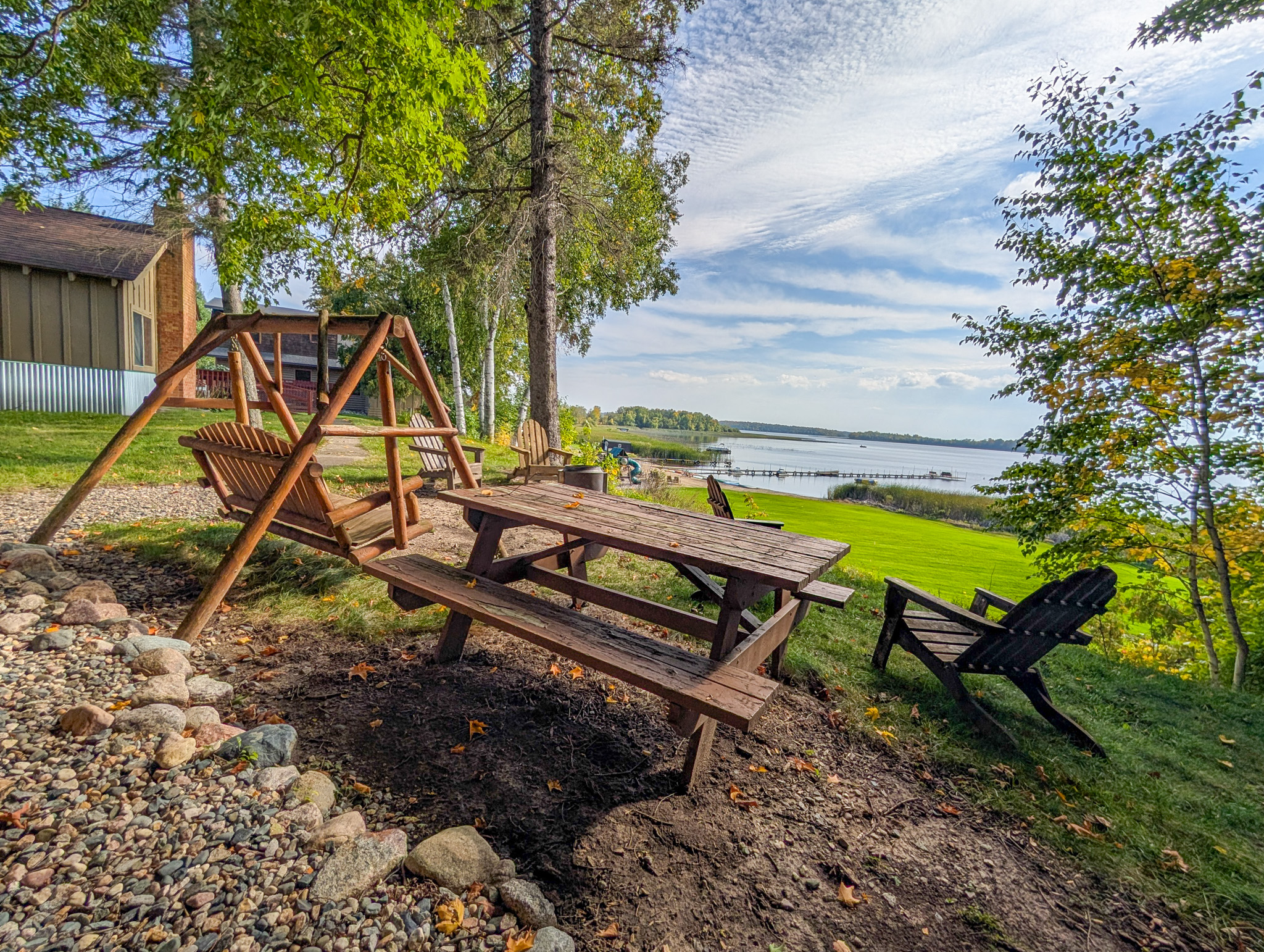- 1-Private Log Swing in Front of Home by Campfire, 4 Adirondack Chairs and 1 Picnic Table