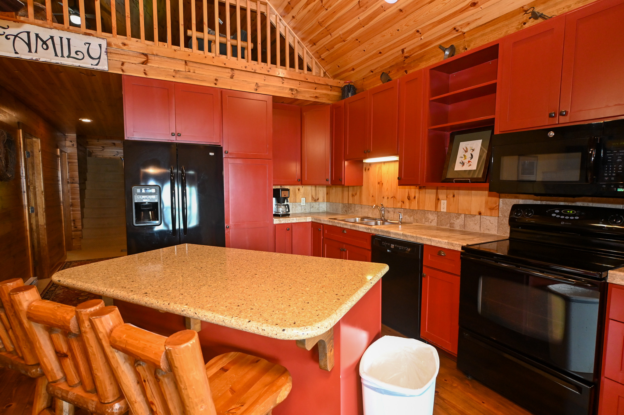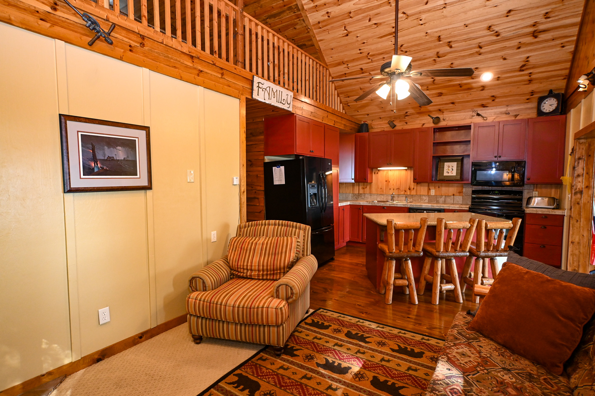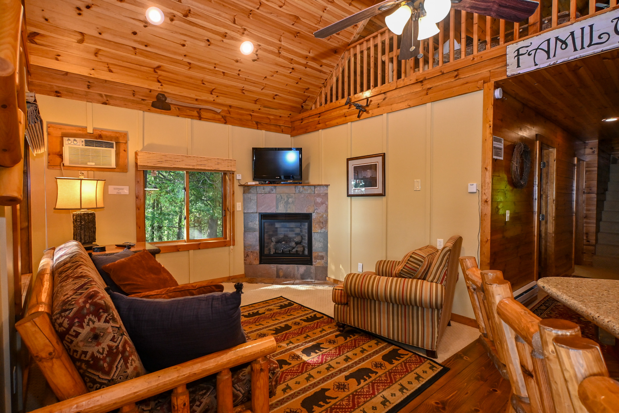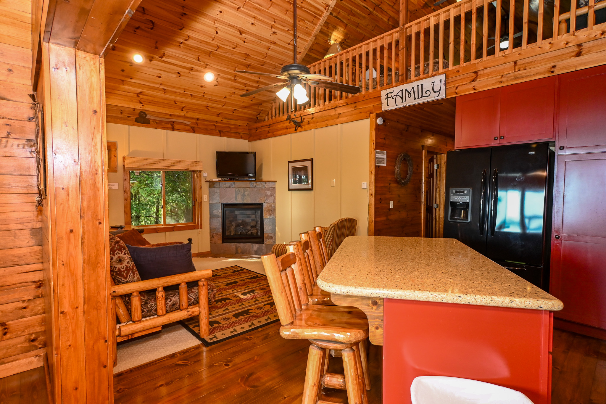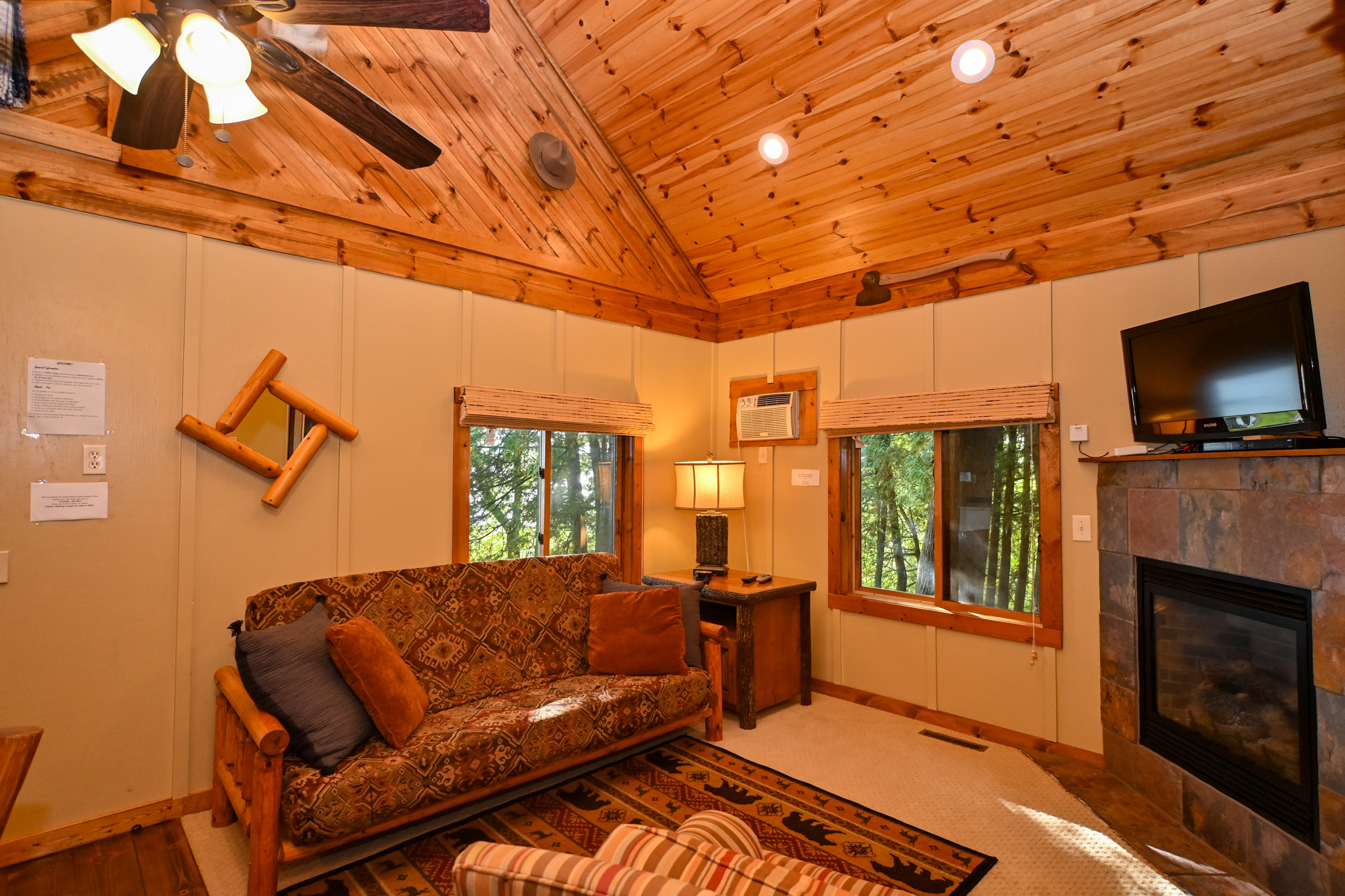 The resort amenities that are included free range from the private fire pit, firewood, paddle boats, canoes, kayaks, paddle boats, dock fishing and more. The cabin is also located next to the lake lodge/office and also the heated outdoor pool.