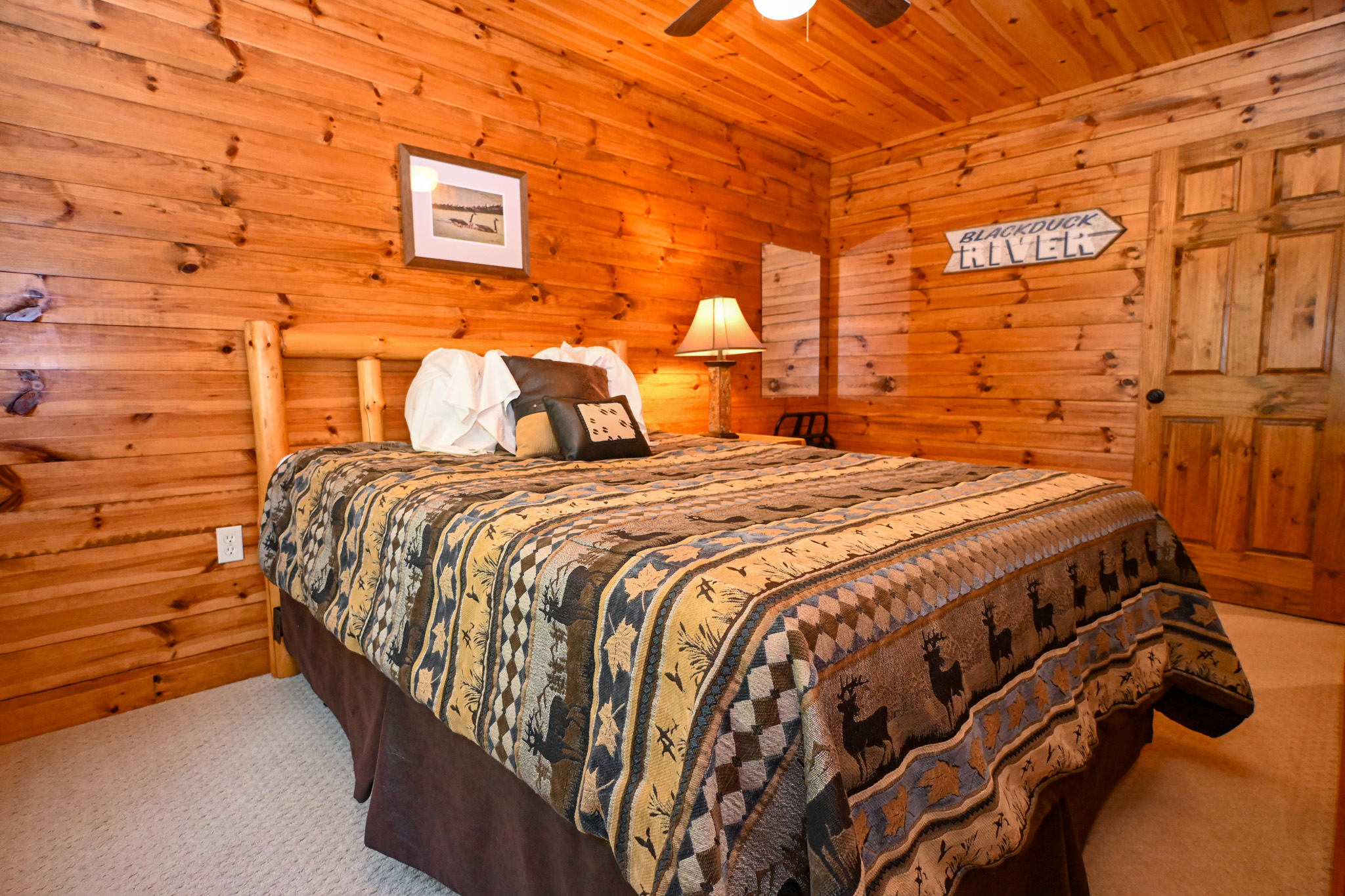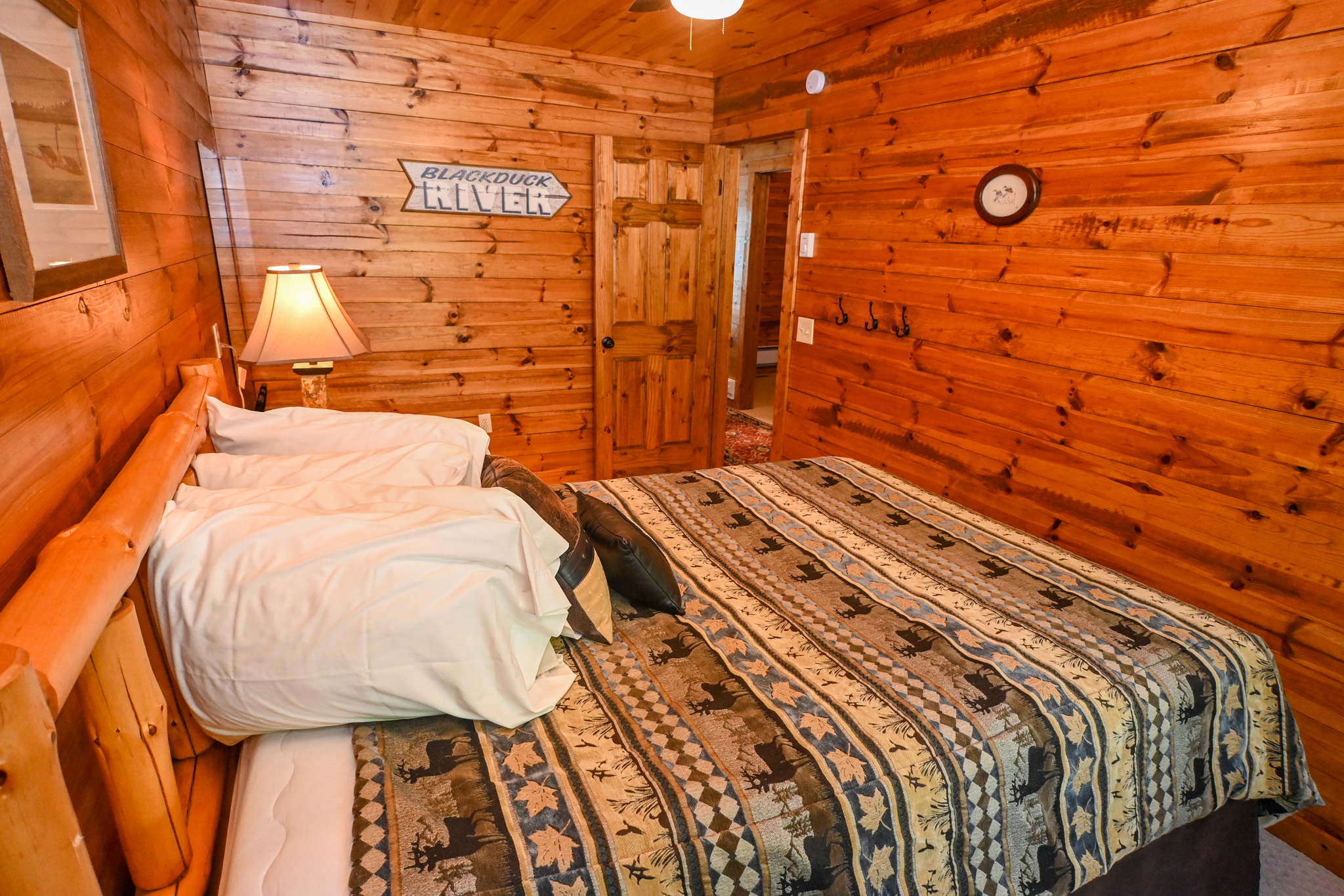 This 3 bedroom plus bedroom loft is our Minnesota reunion cabin and our most private cabin with lake views. It is located next the the soothing sounds of Blackduck River and the tall cedar trees. With Plenty of space and a full kitchen this is great for Minnesota family reunion.